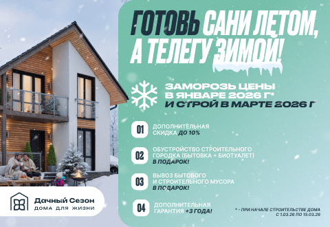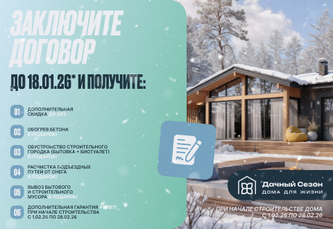 Планируйте строительство заранее и пользуйтесь уникальными бонусами: оформите договор до 18 января 2026 года и начинайте строительство в феврале с полной поддержкой от нашей компании.