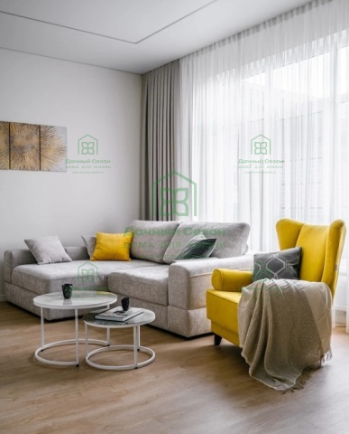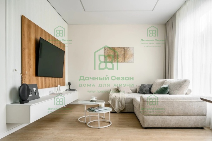 - Большая гостиная 62 кв.м с панорамным остеклением и выходом на террасу 31,5 кв.м
