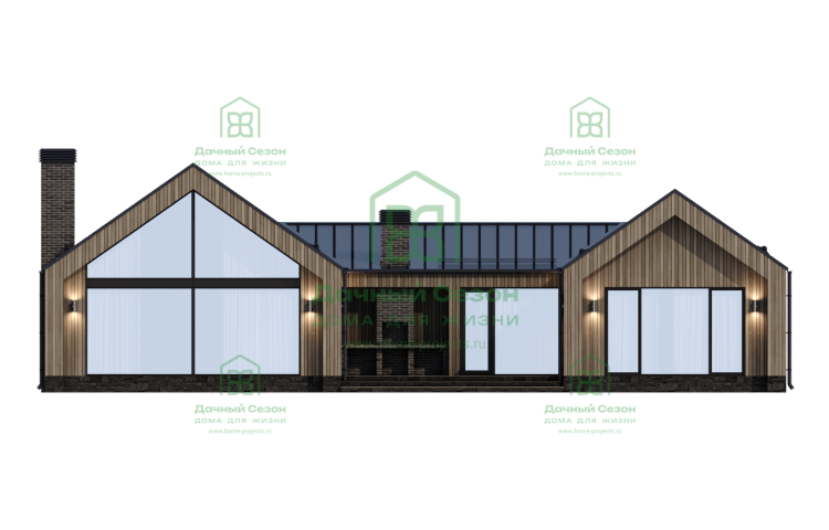 Современный одноэтажный дом площадью 300 кв.м (габариты 17,5 × 20 м) в стиле современного барна с элементами шале. Идеальный выбор для тех, кто хочет жить комфортно на одном уровне: без лестниц, с просторными помещениями и продуманной зоной отдыха.