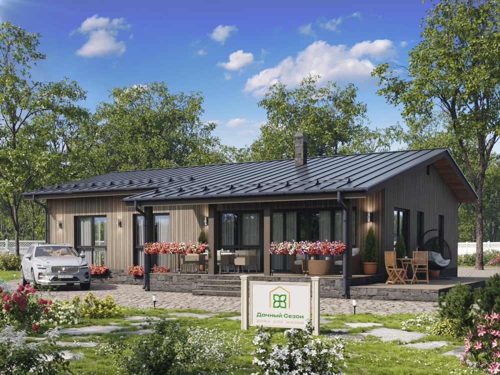 Проект дома «Патагония» от «Дачный Сезон» — компактный, стильный и очень уютный одноэтажный коттедж для комфортной жизни семьи из 4–5 человек. Идеален для тех, кто ценит практичность, минимум лестниц и максимум света/простора на относительно небольшом участке.
